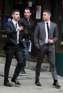 Agora cá entre nós , falando de moda agora, o vestido da Kristen é um luxo ! Amei, amei, amei *0* . E esse cinto caiu super bem. Agora delirei quando vi o Taylor Lautner (Jacob), com esse terno lindo. Até me lembrei de uma foto que vi na Revista da Capricho nessa quinzena. O Zac Efron e o Joe Jonas. Os dois estão liiinndooossss. Olhe a foto e babeemm !